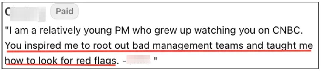 Even if I don’t write about your stock: in a market where the notions that “you only live once” and “hold on for dear life” have eclipsed the concepts of fundamental investing, hopefully Herb on the Street and my Red Flag Alerts will help serve as a reminder of the risks, as it did for this subscriber, who wrote…