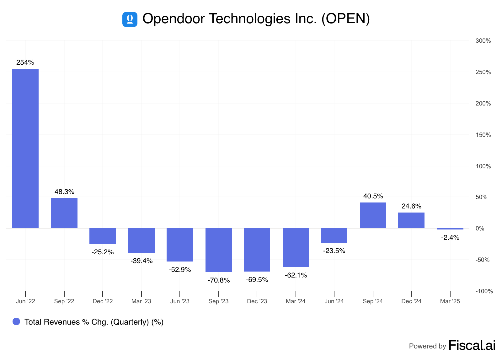 For fun this morning, I went through a bunch of metrics for each. One is worse than the next, but to simplify things, let’s just look at revenue growth, starting with OPEN...