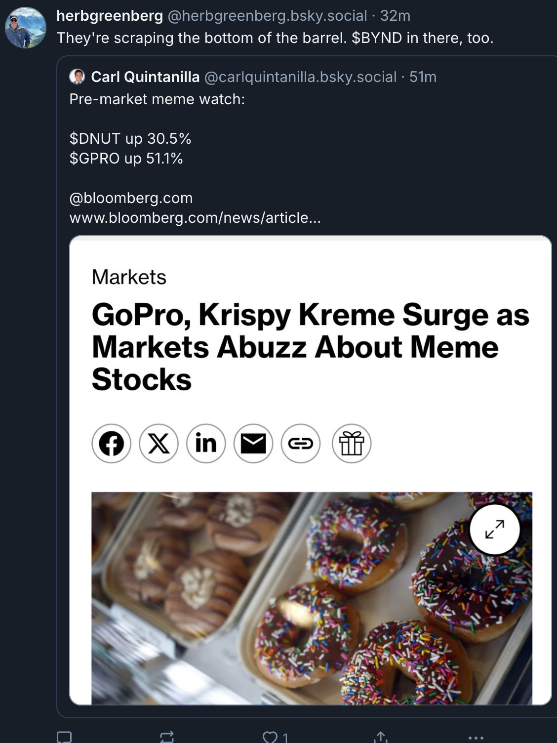As I put it in my repost of a post this morning by CNBC’s Carl Quintanilla regarding the pre-market rise of the meme stocks...