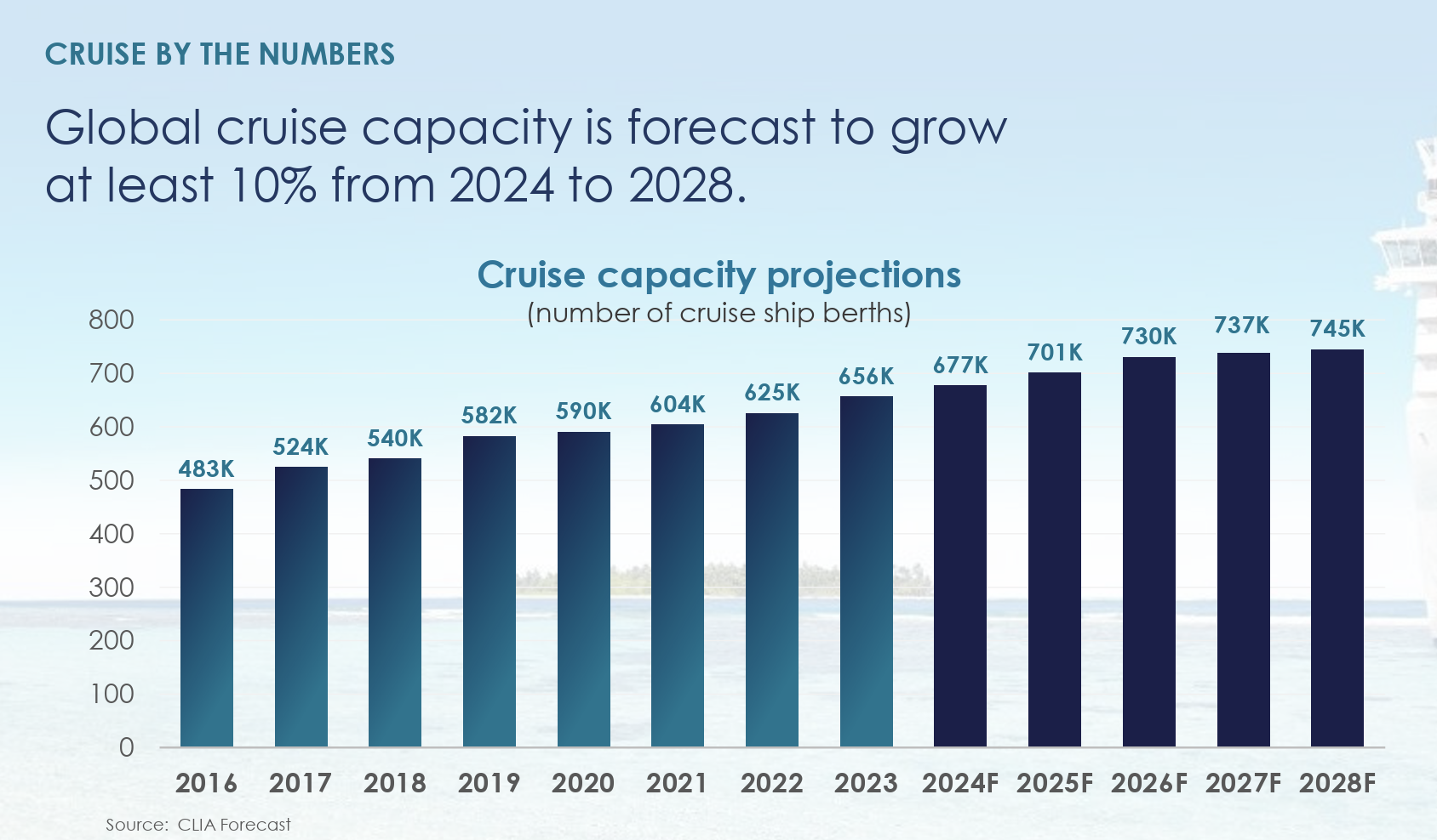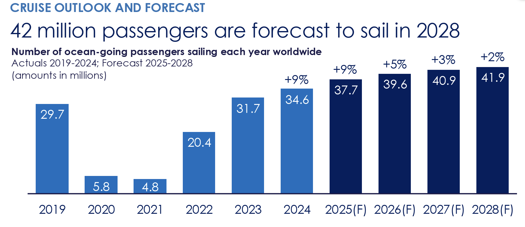 Finally, there’s this chart from the Cruise Line Industry Association’s latest annual report, which shows a deceleration in growth by 2028...