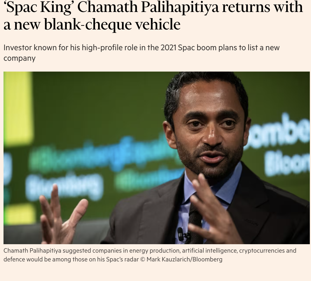 ▶ Speaking of which, this market rolls on... Even with the recent “tech selloff,” it wasn’t much different than the seas I’m sailing on. A new high here, a selloff there, a rally there. This market in this current go-round has been as easy as, buy the dip, let ‘er rip! There, of course, lies the danger – especially for newbies who appear to be driving much of this market, but also pros who fear they’ll miss out – just like they did with SPACs. And, as I’ve written several times now... SPACs are back! Even the biggest SPAC promoter of the 2021 SPAC-tacular boom/bust is back, per the FT...